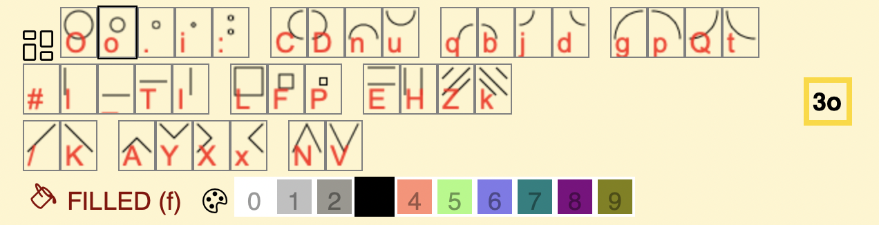 Add another O, if you painted a o Special chars here: - J: actual form in painting tool - m: actual color in painting tool - y: actual state of fill in painting tool Add same object twice usage: +cl'AddSame'#c{ >ymJ }