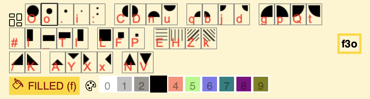 Copy all forms to the left Random fill, color, form B: Random fill M: Random color S: Random form #a{ M/ }