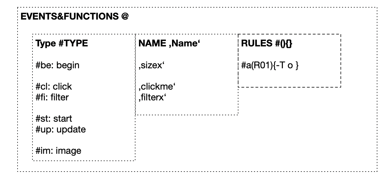 | ONCLICK | +cl'NAME' | Define what happens as an add-on, when you click in the canvas.